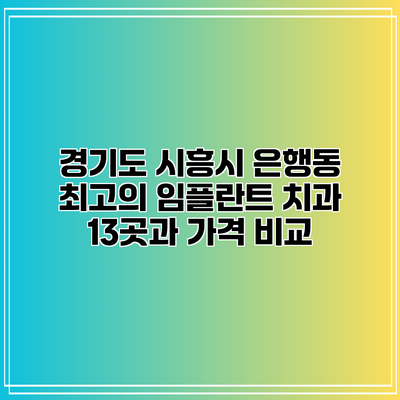 치아의 건강은 우리의 전반적인 삶의 질에 큰 영향을 미치죠. 특히, 임플란트 시술을 고려 중이라면, 적합한 치과를 찾는 것이 매우 중요합니다. 오늘은 경기도 시흥시 은행동에서 임플란트를 제공하는 치과 13곳과 그들의 가격을 자세히 비교해보도록 하겠습니다. 임플란트 시술을 고민하는 모든 분들에게 중요한 정보가 될 것입니다!
